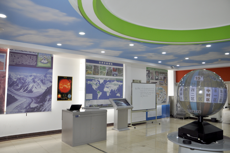 天文地理厅 ??? 天文是人类探索自然的终极领域,古有嫦娥奔月,万户飞天,充分体现了中华民族对宇宙的向往与探索。如今我国的航天事业日益增强,不仅有自己的空间站,而且初步计划登月建立宇宙基地,同时也帮助其他国家发射人造卫星。我校天文地理厅的设计理念打破传统的教学思想。每一份空间都会说话,每一面墙壁都能育人。旨在启发同学们对宇宙的探索,热爱地球,零距离体验地质地貌、大气循环、海洋运动、日月星辰与全天星图等天文地理景观。 ??? 一进入天文地理展厅“宇宙浩渺,天道循环”几个大字撞入眼球,不禁想去探索那浩瀚的宇宙,探究那天体的运行方式,想要移居其它恒星,想要触摸那蓝蓝的天空、洁白的云朵,想要体验宇宙包罗万象的壮阔,从而得到心灵的启迪。一路向前走一路震撼,震撼我国山河的壮美、世界各地的风情。 ??? 大厅墙壁是发光式可替换的灯箱,把地理地质灯箱片放在灯箱里面,配以语音说明将地形地貌的特点娓娓道来。侧面是高原、盆地、丘陵等十八种地形地貌模型,使学生一目了然、可以直观了解到高原的壮阔、丘陵的崎岖以及各种地形地貌。 ??? 世界语音立体地形图和中国语音立体地形图非常的科学严谨,上面山脉隆起都是依据真实的比例而设计,可以感受到立体感,而且它把地形和政区图结合到一起,既有关于地形的分布和介绍,又有政区的分布和介绍。它最大的特点就是让无声的地图能语音表达,实现即点即读的功能。那么,这样的地图不仅可以看而且还可触摸,体验珠穆朗玛峰的高耸震撼,倾听大洋中海的声音,用心思考实现多感官刺激,让学生在兴趣中学到知识。 ??? 在两个地图中间还布置了一个世界钟,让学生在了解北京时间的同时了解世界上其他城市的时间,进一步加深对时区的认识。 ??? 孩子们好奇不已的飞碟式三球仪主要介绍我们最熟悉的太阳、地球、月球之间的相互关系。三球仪生动详细的演示了地球自转,绕太阳公转,月球绕地球公转,月相变化的成因,二十四节气,地球上四季形成的原因等多方面的内容。让同学们在好奇中提高对天文学知识的兴趣,更深理解教材。 ??? 窗帘也是别具风格地用地理知识高清图设计,可以让学生学习相关知识。 ??? 新颖的设计,先进的仪器吸引了一大批爱好天文地理的同学在这浩瀚的宇宙中,壮美的山河中前行...... |