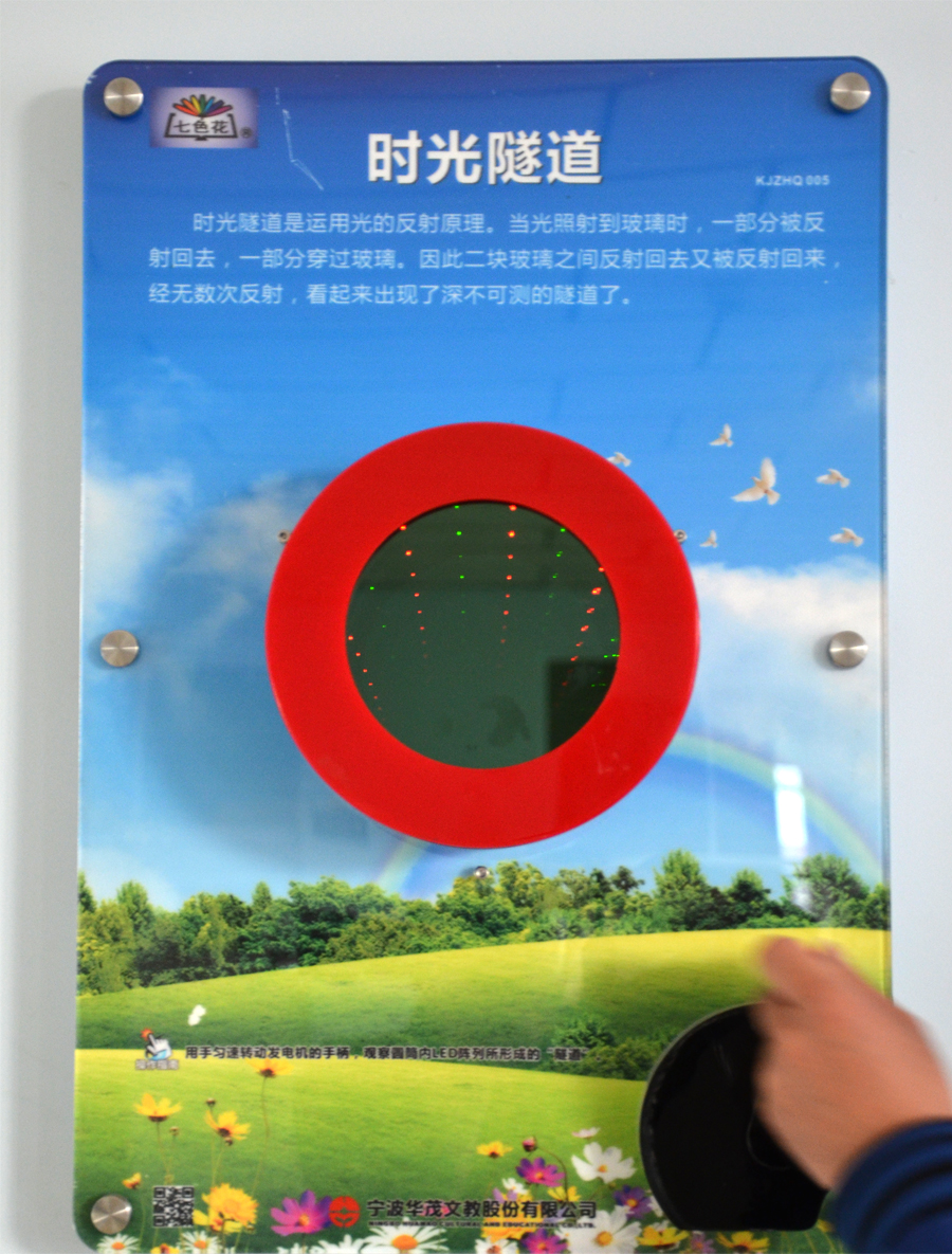 | 时光隧道利用的是光的反射原理,经无数次反射,看起来便成了深不可测的隧道了。有好奇的孩子在看完之后去查阅有关书籍是不是真的有时光隧道,它能把你带到另一个时空中吗? |