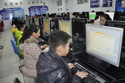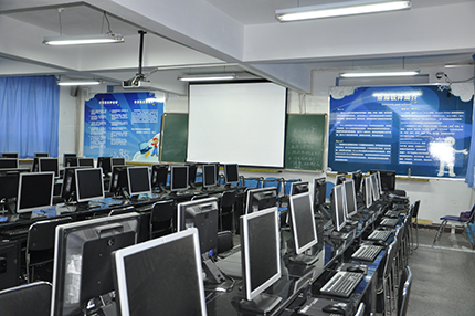 计算机教育在各级各类教育教学中的地位越来越突出,我校对同学们是否能很好掌握这一技能尤为重视。为了能满足学生在课上人人拥有一台电脑,我校共建设完成四间计算机教室,每间教室配有1台教师机,59台学生机。教师机安装网络软件,具有屏幕广播、语音广播、学生演示、屏幕录像、屏幕回放等功能。教室内配有多媒体白板教学,有外放音箱,可以帮助教师顺利地完成教学任务。机房内展板呈现着学生别具一格的计算机作品和一些计算机相关知识介绍。展板既有文化氛围又传播了计算机使用技术。现有2到6年级及预备年级均开设电脑课,所有学生已掌握了电脑的基本操作,通过学习,提高了学生的信息素养,开拓了他们的视野。计算机教室为我校的信息技术教育教学提供了物质保障和信息来源,为提高我校的教育教学质量起到了积极的作用。