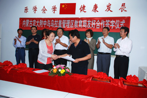 9月16日,乌拉盖管理区高海军书记一行来我校访问,我校与乌拉盖管理区教育局签定友好合作协议。
