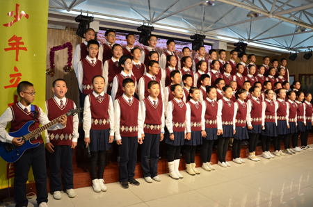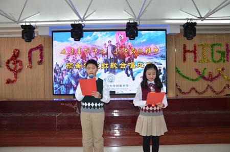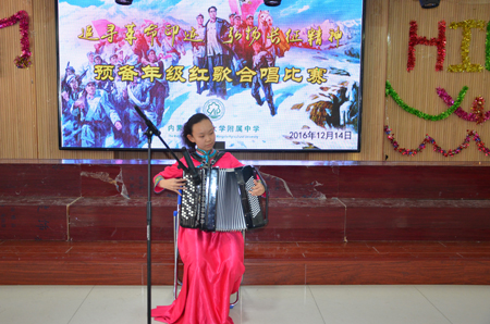 2016年1214日下午,我校2016级预备年级组于励志楼六楼多功能厅举办了纪念毛泽东诞辰123周年暨中国工农红军长征胜利80周年班级合唱比赛。李立峰校长、于涛副校长、胡燕副校长、校长助理王剑、七年级组长管伟君、学生处主任杨宝倩、科学组李靖老师等出席了本次活动并为获奖班级颁奖。